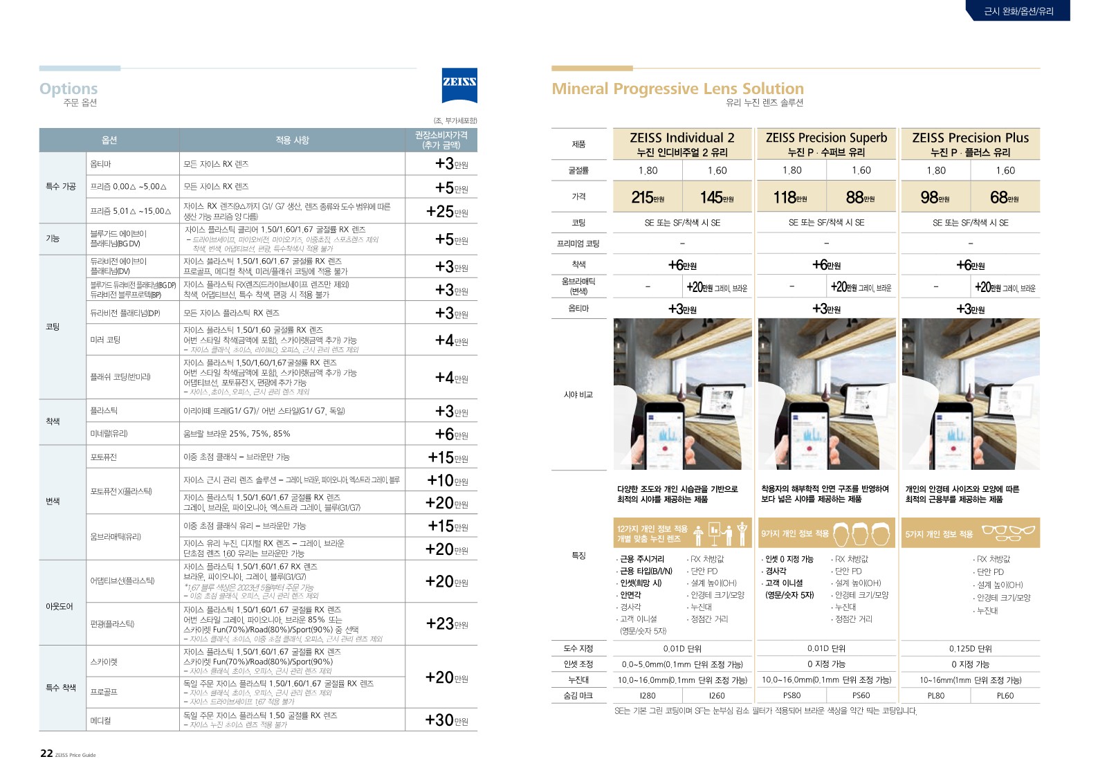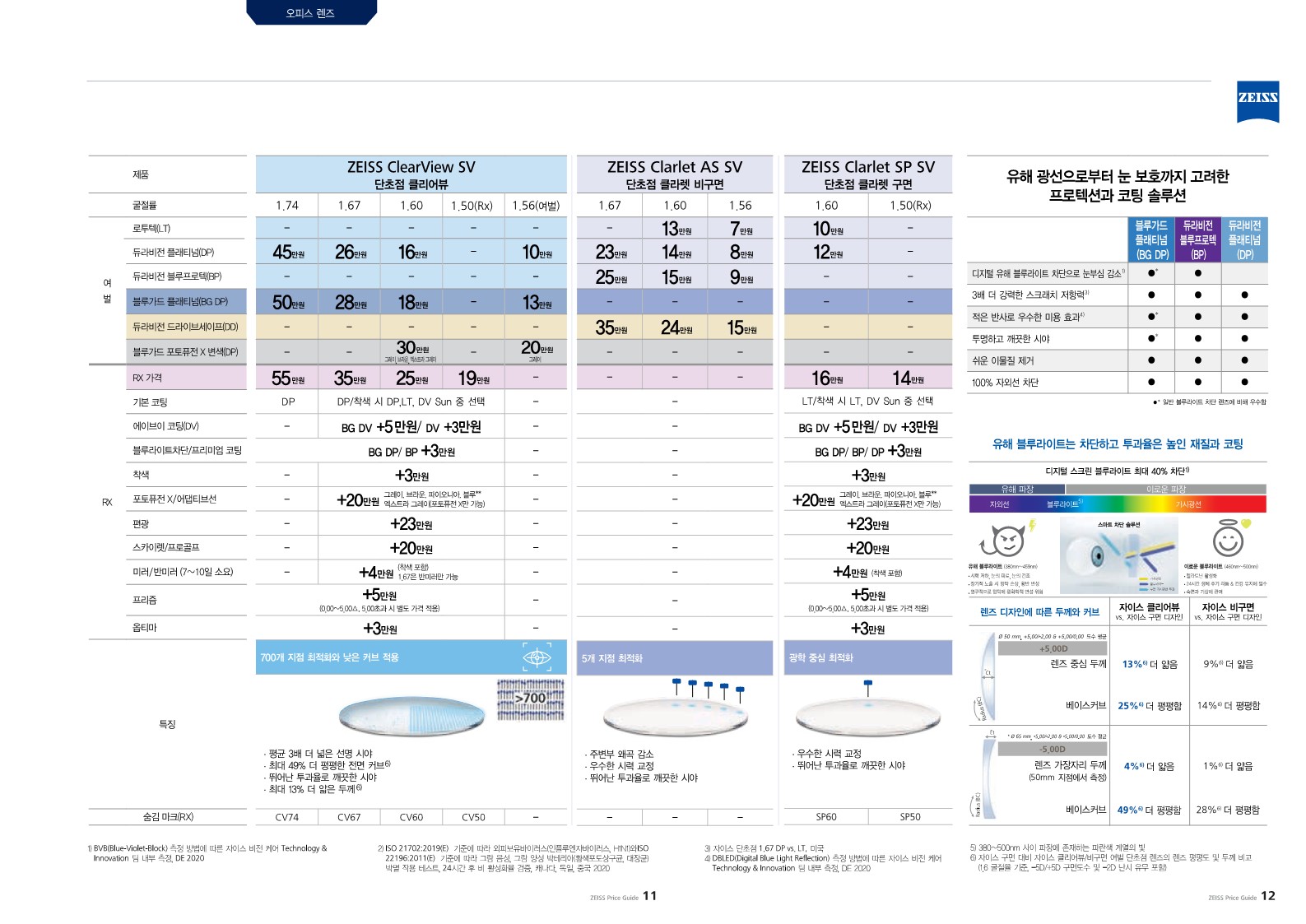 자이스 렌즈 가격표