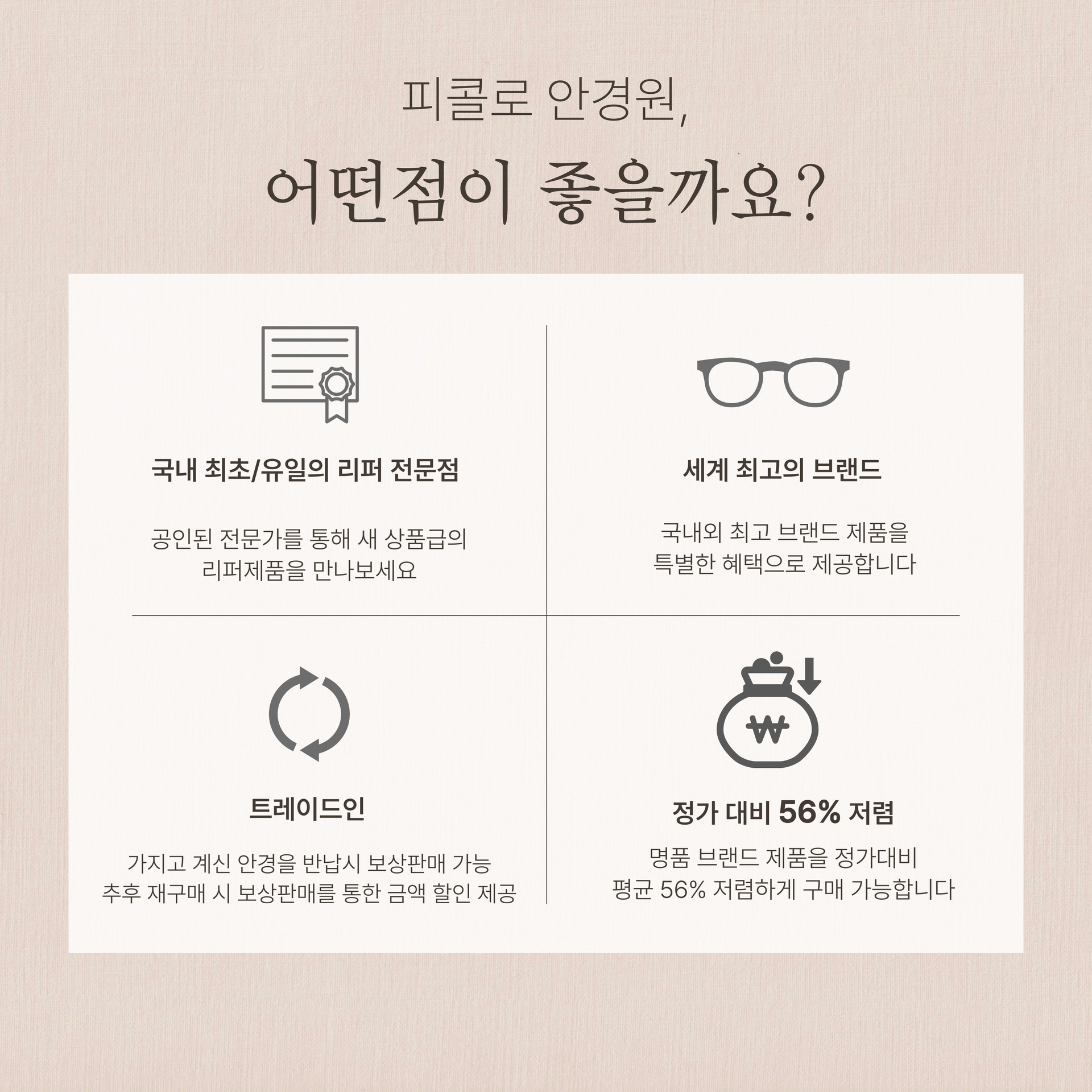 *피콜로 안경원 내방시 안경렌즈 할인 및 검안/피팅 무료제공